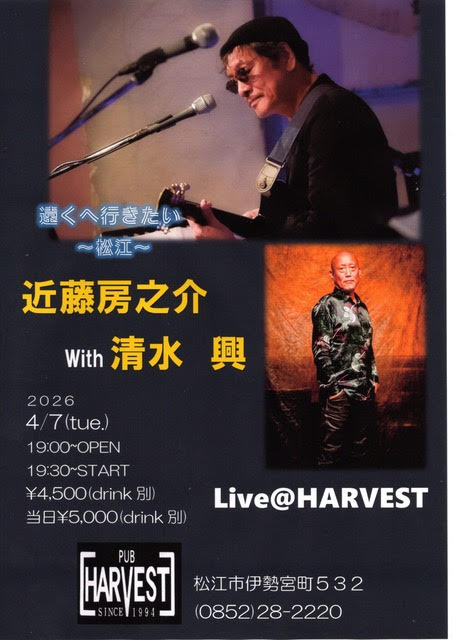 2026年4月7日(火)「遠くへ行きたい〜松江〜 近藤房之助 with 清水興」