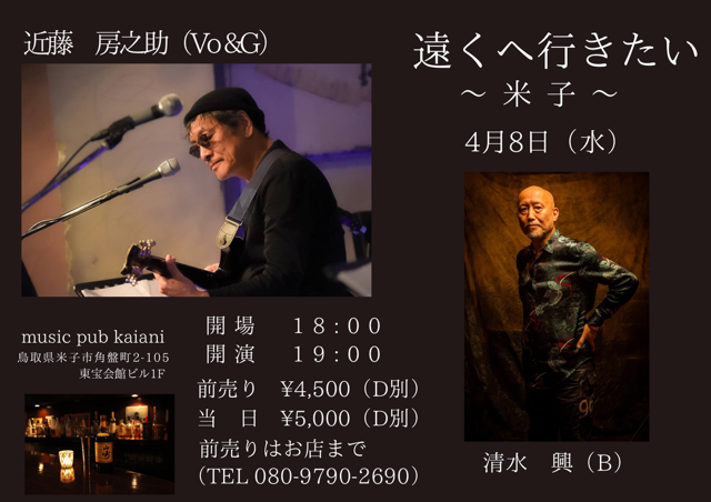 2026年4月8日(水)「遠くへ行きたい〜米子〜 近藤房之助 with 清水興」