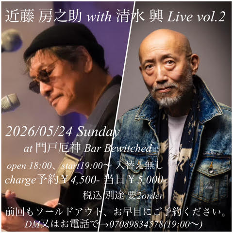 2026年5月24日(日)「近藤房之助 with 清水 興 Live vol.2」